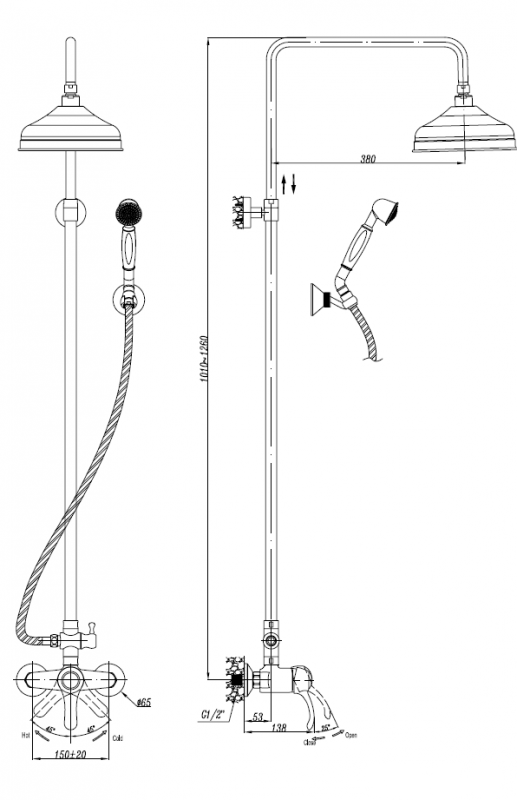 Душевая стойка со смесителем, верхним и ручным душем  FIRST-CD-02-M Бронза ручка  Металл Cezares